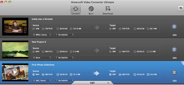 Video Converter Ultimate Aimersoft:這是一款Mac平臺的全能視頻格式轉換工具,是Mac OS X下視頻、音頻、DVD的最佳轉換工具,為您的下載、轉換、上傳、刻錄提供最大的便利。