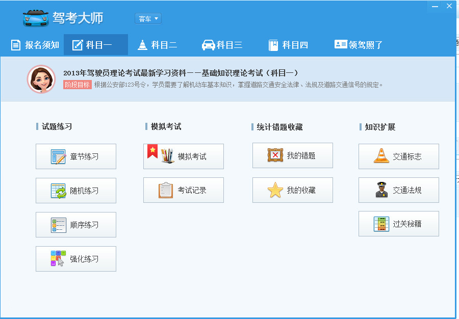 駕考大師是一款駕照模擬考試系統(tǒng),從駕考科目一到科目四都有詳細(xì)齊全的駕照考試題庫(kù),并有模擬考試系統(tǒng)、統(tǒng)計(jì)錯(cuò)題以及知識(shí)擴(kuò)展功能,平時(shí)在駕考大師上多多聯(lián)系才能在考場(chǎng)上更有把握一次通過(guò)。