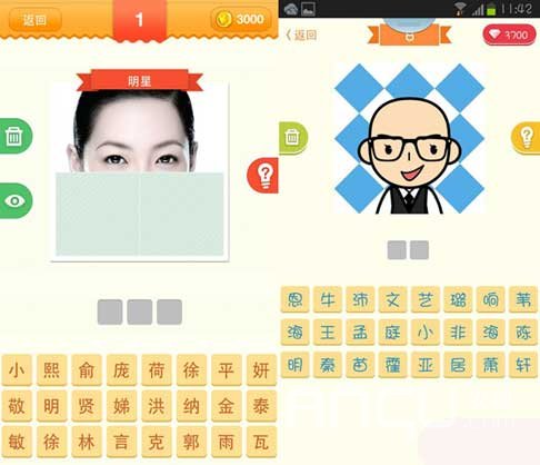 游戲操作簡單,跟其他同類的猜圖游戲玩法差不多,大家只需根據(jù)屏幕上方的明星照片,仔細觀察特征,點擊下方打散凌亂的字體,選擇拼湊出圖中明星的大名即可順利通關(guān),如果不小心點錯了怎么辦?也不要著急,哪里點錯點哪里,那個錯誤的字就會自動消失不見啦。