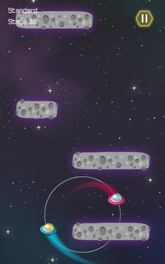 宇宙二人轉(zhuǎn) Duet Escape:一款虐心的休閑游戲,游戲主要考驗(yàn)協(xié)調(diào)力和膽量,尤其是橫框的時(shí)候,一定要調(diào)整好,等到一個(gè)飛船過(guò)去了然后趕緊轉(zhuǎn)。不要心急哦~