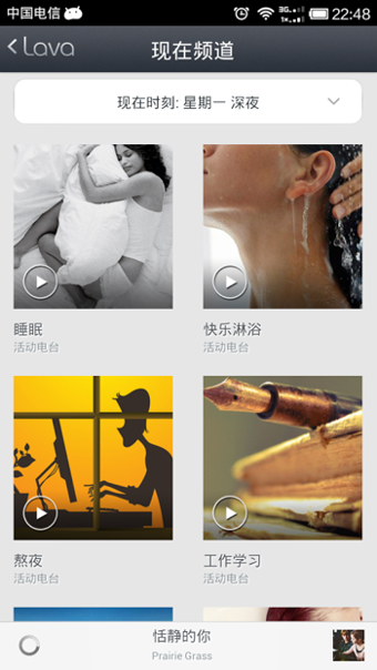 LavaRadio-環(huán)境音樂(lè)電臺(tái),為您的生活配樂(lè)1. 眾多音樂(lè)專家為您的生活而準(zhǔn)備的環(huán)境音樂(lè)電臺(tái),調(diào)情、睡眠、開(kāi)車…