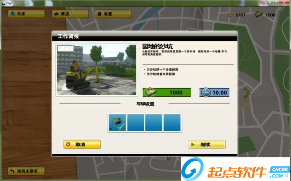 1.想要成為城市建設(shè)項(xiàng)目的承包商首先得有資質(zhì)才行,好在我打通了各種渠道給你搞來(lái)一張認(rèn)證書(shū)。請(qǐng)?jiān)谏厦嫣顚?xiě)產(chǎn)權(quán)所有人的名字,城市所在地以及公司名字。為自己的挖掘機(jī)選好漆涂層??纯醋约旱呢?cái)產(chǎn)和車(chē)庫(kù)狀況,比較糟糕。