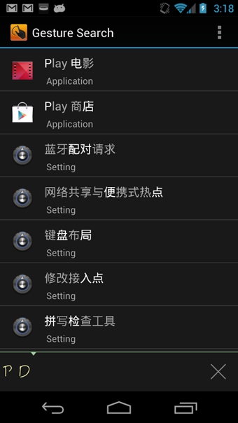 Google手勢搜索 Google Gesture Search:手勢操作應(yīng)該還算是比較局限的一個操作,相對來說,大家還是喜歡點啊點點,不過谷歌這個手勢操作還是需要支持,支持中文不容易。