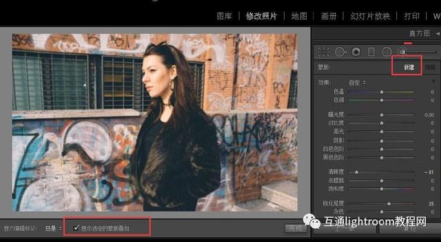 完成繪畫后,取消選中“顯示選定的蒙板疊加層”,您將可以在右側(cè)面板中調(diào)整參數(shù)時看到圖像上的變化。