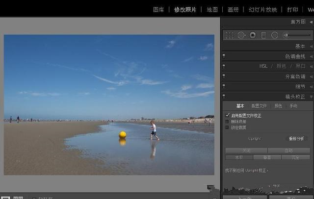 讓我們從基本的幾何檢查開始:確保地平線是直的,所有需要垂直的東西實際上是垂直的,整個構(gòu)圖看起來很舒服??梢栽凇扮R頭校正”選項卡中找到用于拉直圖像和調(diào)整透視的所有必要工具。由于沒有垂直線并且地平線已正確對齊,因此我們的圖像唯一需要的是鏡頭輪廓校正。使用廣角鏡頭拍攝時,此功能特別有用。Lightroom存儲有關(guān)各種最常見鏡頭失真及其更正的信息,因此我們只需勾選啟用輪廓修正旁邊的框。效果是從曲線到直線的水平線的輕微修正。