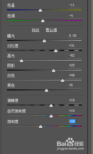 把照片導入到LR里,最好是RAW格式的圖像,對圖像做調(diào)整,提高對比度,降低高光和黑色色階,降低飽和度。