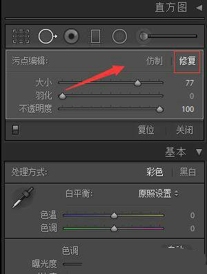 這將打開清除工具的設(shè)置。首先要指出的是,你要確保選擇“修復(fù)”,而不是“仿制”。