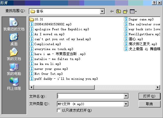 你可以用鼠標(biāo)點(diǎn)擊菜單項(xiàng)的“文件-->打開”選項(xiàng)或者工具欄的打開文件圖標(biāo)來打開你要播放的音樂文件: