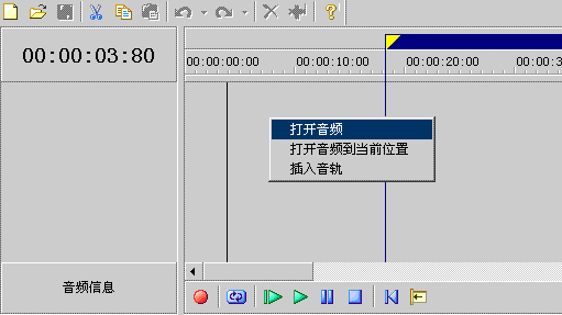 你可以在音樂編輯區(qū)用鼠標(biāo)右擊彈出的菜單中的選項(xiàng)“打開音頻”來打開你要播放的音樂 文件: