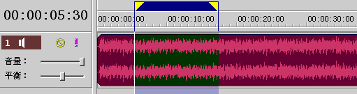 當(dāng)音樂文件被打開以后,文件的波形圖會(huì)顯示在音樂編輯區(qū)中,顯示的顏色狀態(tài)可以區(qū)分為:被選中是的狀態(tài)和沒有被選中時(shí)狀態(tài)