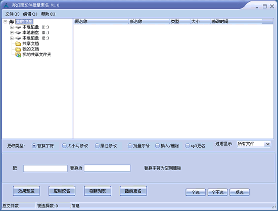 “亦幻園批量更名”是一款功能強大的文件批量改名工具。輕松幫助你完成照片的文件名添加日期、給文件名添加統(tǒng)一的標志、順序數(shù)字命名文件、文件名大小寫轉(zhuǎn)換,查找替換特定的字符,根據(jù)MP3標簽自動命名等多項任務。