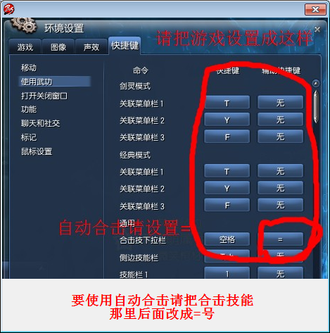 1、按鍵設(shè)置,在游戲中,按照下圖將游戲設(shè)置2、要使用自動合擊,請把合擊技能那里后面改成=號。