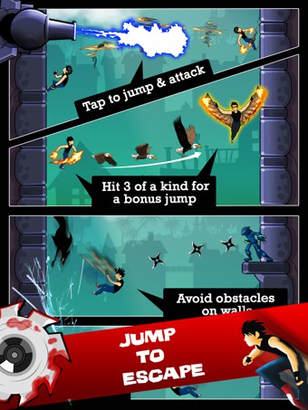 《跳躍逃跑 Escape Jump》是一款豎版的跑酷類游戲??焓褂秒p截棍!飛檐走壁!故事里的這位少俠雙手的火焰神功已非常了得。特別是在空中的時(shí)候,可以擊潰一切敵人!不過(guò),他這么兇為什么要怕這些戰(zhàn)5渣的僵尸呢?不管啦,反正趕快跑啊。跑慢了就會(huì)掉下去被僵尸XXOO啦~~