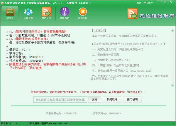 (1.)無(wú)需任何小號(hào),無(wú)需登錄阿里旺旺,不需要任何驗(yàn)證(2.)軟件全自動(dòng)掛機(jī),一天可推送20-100萬(wàn)…,大大節(jié)省了賣家的營(yíng)銷成本。