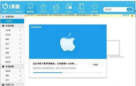 打開i蘋果助手并連接ipad與電腦,查看是否成功連接