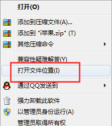 1、首先用鼠標右鍵點擊i蘋果助手的桌面圖標,然后在彈出的選項中點擊“打開文件位置”來到i蘋果助手的安裝文件夾;