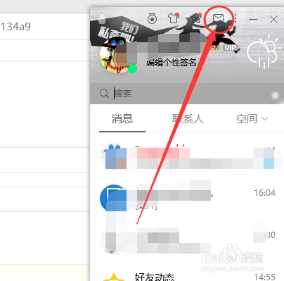 首先可以通過(guò)QQ直接點(diǎn)擊上方的郵箱按鈕,如下圖所示,點(diǎn)擊后打開(kāi)自己的QQ郵箱。