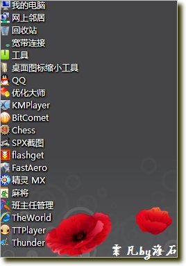 你只需要雙擊它,你的桌面的圖標(biāo),快捷方式啊,都變小了。再運(yùn)行一次,就恢復(fù)了。對經(jīng)常把圖標(biāo)堆在桌面,又懶得整理的家伙來說很實(shí)用