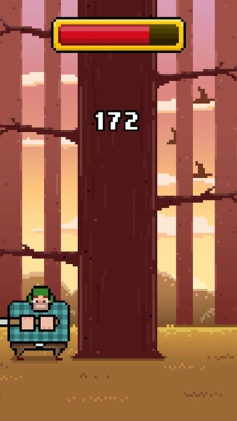 點(diǎn)擊左右平面來進(jìn)行砍樹,同時(shí)躲避樹枝,當(dāng)有樹枝是就換到另一邊去砍伐,注意要夠快,不然游戲結(jié)束游戲失敗。