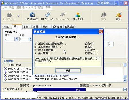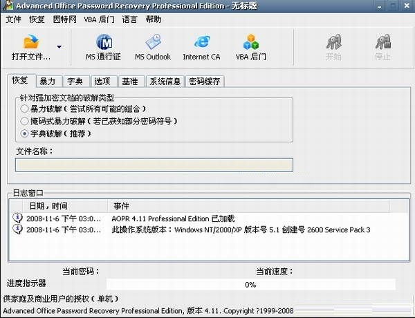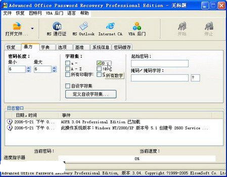 Advanced Office Password Recovery是一個(gè)多功能的word密碼破解工具,不僅能夠處理微軟公司的各種常見(jiàn)文檔格式,而且涵蓋從Word 到Project在內(nèi)的十四種格式類(lèi)型。本軟件提供了“暴力”和“字典”兩種破解方式,如果時(shí)間足夠加上破解策略得當(dāng),AOPR完全可以找回用戶(hù)遺忘的文檔密碼。