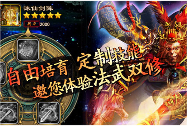 戰(zhàn)斗——1V1車輪對(duì)決,簡(jiǎn)潔明了;華麗爆表叼炸天的戰(zhàn)斗特效表現(xiàn);技能、克制、連協(xié)、援護(hù)等多重搭配衍生豐富戰(zhàn)術(shù)。角色養(yǎng)成——武力、法術(shù)和法武雙修三種培養(yǎng)路線;人氣角色專屬定制技能;通過(guò)強(qiáng)化、培養(yǎng)和渡劫,玩家自由培養(yǎng)理想角色屬性。