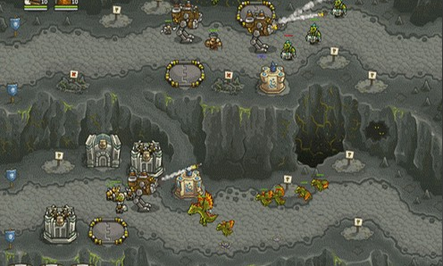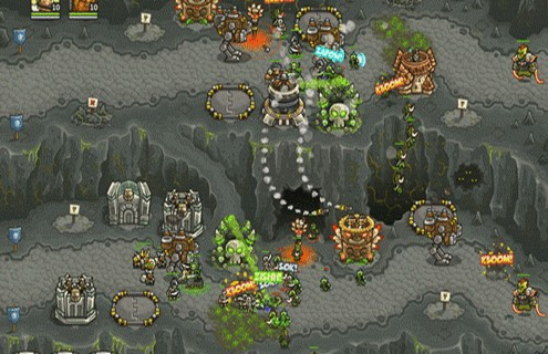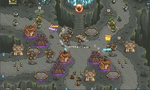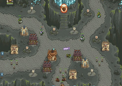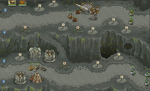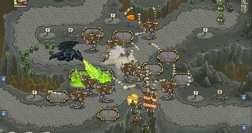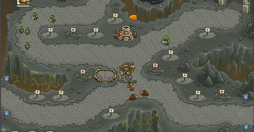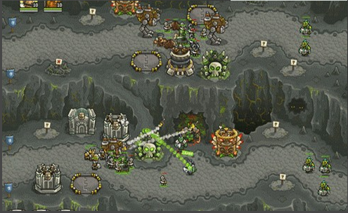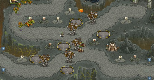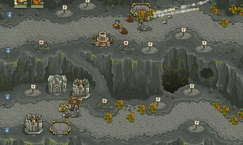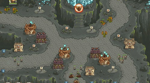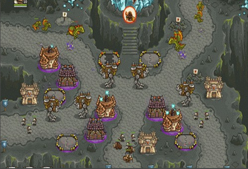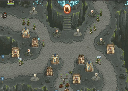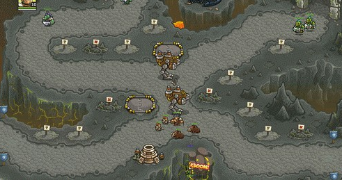 1.上面有兩路,左邊一路是抗魔法的怪,右面一路是抗物理的,左下角還有個墓地出骷髏,了解這些后,首先所有的怪都會最后通過同一條路,所以一上來先在最右下角兩個位置最不好的地方造倆兵營,并在兵營旁邊造一個pao塔和一個魔法塔,魔法塔升級術士塔,出召喚石頭人;pao塔出電塔,為了防空,這兩塔優(yōu)先升級魔法塔,因為后面有飛龍。