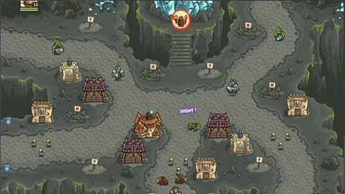 3.上面兩路的交匯處也是一個兵集中出現的地方,這里可以嘗試造下箭塔升級森林箭塔后升級纏繞,或者造一個術士塔升級召喚石頭,暫時拖一下怪。