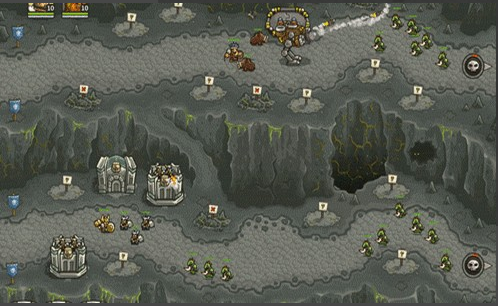 在這里,你擁有4種防御塔:法師塔,弓箭塔,炮臺和兵營;