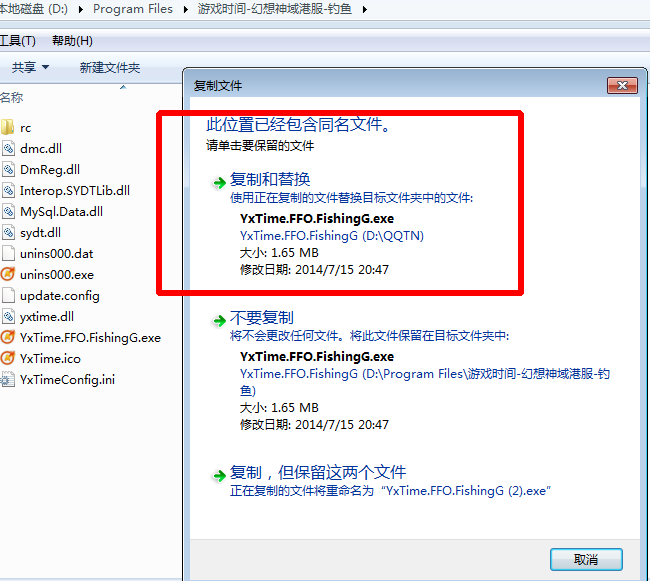 2、然后將名為YxTime.FFO.FishingG.exee的補(bǔ)丁覆蓋原本程序即可。