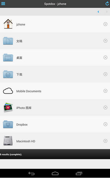 Spotdox 可以完整的瀏覽整臺 Mac 里面的文件。Spotdox 目前有 Mac 和 PC 兩個平臺的電腦客戶端以及網(wǎng)頁、iOS 和 Android 客戶端。
