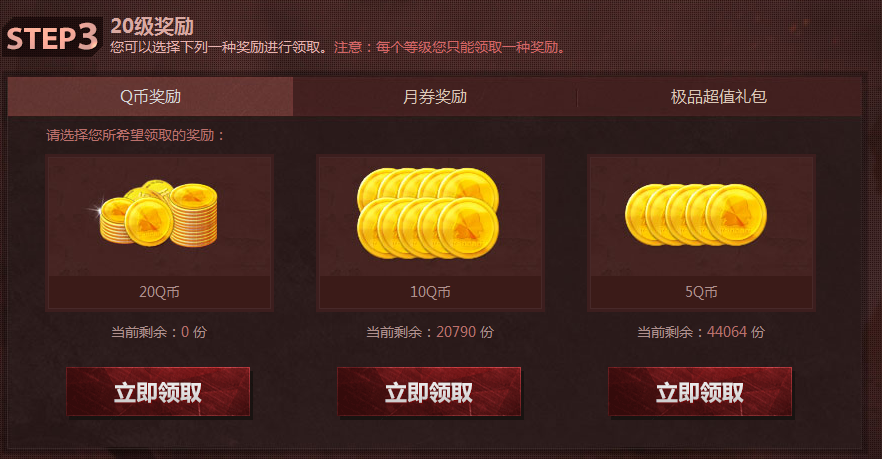 7月18日-8月6日新注冊的玩家,當(dāng)?shù)燃壍竭_(dá)10級、15級、20級時,即可領(lǐng)取以下3種獎品中的1種;