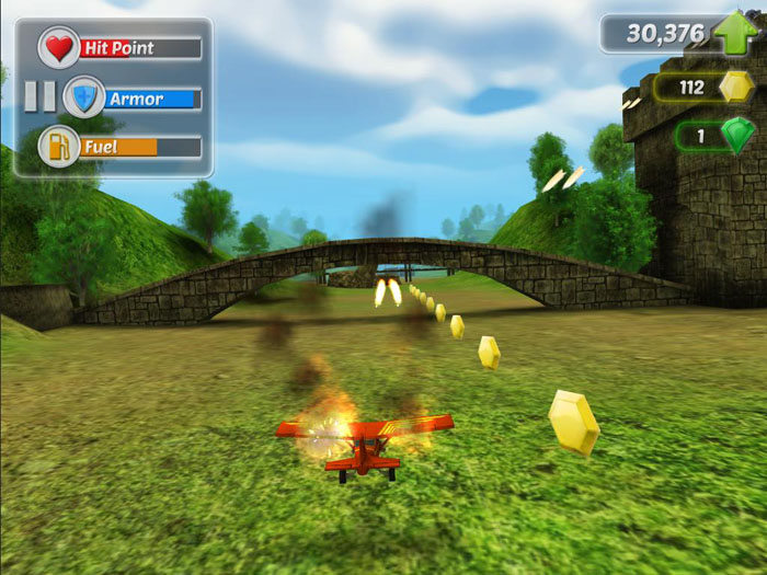 游戲的玩法與其說(shuō)是”創(chuàng)新”,還不如說(shuō)是換湯不換藥,但凡玩過(guò)天天酷跑的玩家在接觸這款游戲時(shí)都曉得這個(gè)游戲的大致玩法。玩家可以通過(guò)觸屏或者重力感應(yīng)控制飛機(jī)的起降高低,只要不要撞到石頭上或者迎面而來(lái)的敵機(jī)即可,而游戲中的金幣、道具用法其實(shí)也和酷跑里的差不多。例如燃燒之翼里的U型磁鐵,沖刺道具等。但這款游戲玩法也并非毫無(wú)亮點(diǎn)可言,比如新增其他新道具,比如飛機(jī)的燃料(因?yàn)轱w行是需要消耗燃料的,所以玩家需要及時(shí)補(bǔ)充才行)、修理飛機(jī)等,另外,飛機(jī)即使狠狠撞上石頭,也不會(huì)馬上失事,而是機(jī)翼燃燒著,只要玩家不再撞到障礙物,就可以這樣無(wú)盡地燃燒下去!