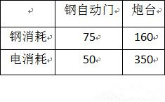 資源和電力消耗以鋼自動(dòng)門(mén)和炮臺(tái)為例: