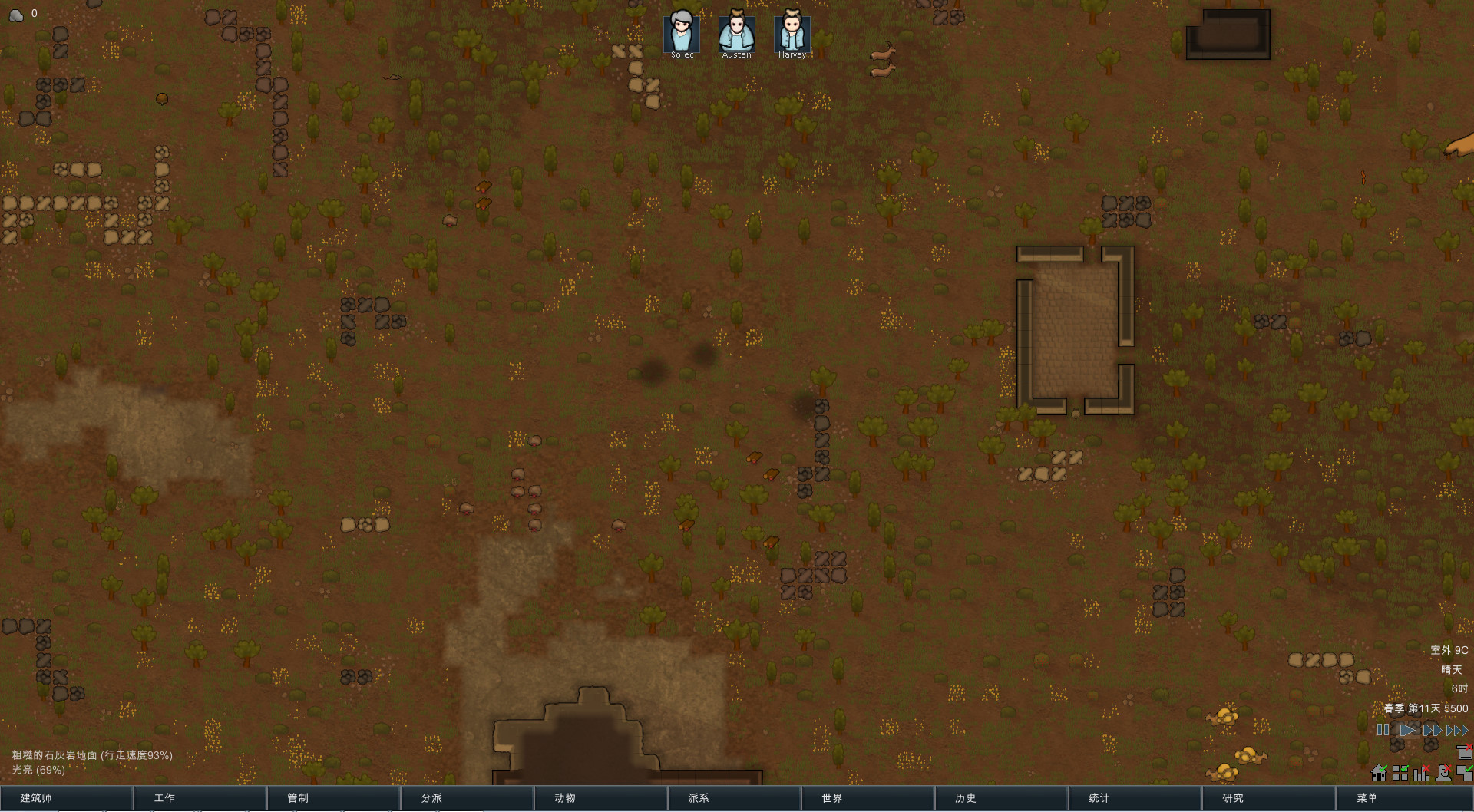 這期間初始資源開(kāi)始不足,該采礦采礦該砍樹(shù)砍樹(shù),并且優(yōu)先狩獵3-4只動(dòng)物作為食物來(lái)源。