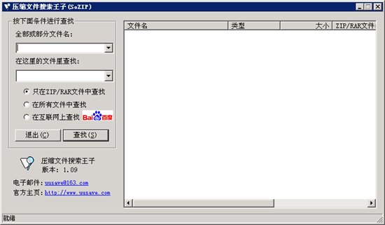 壓縮文件搜索王子,是一款文件搜索工具,專用于在壓縮文件(ZIP/RAR)中搜索指定文件。支持多線程,高效穩(wěn)定,歡迎試用