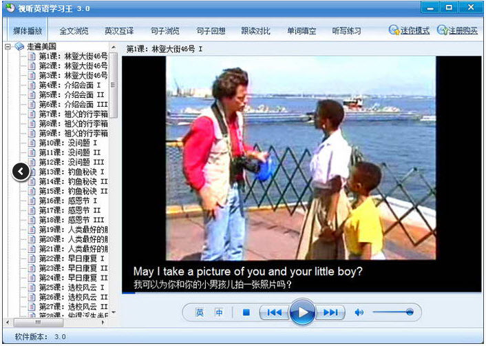 想找一款能看能聽的英語學(xué)習(xí)軟件不容易,《視聽英語學(xué)習(xí)王》是一款非常實(shí)用、有效的視聽英語學(xué)習(xí)軟件,它精選了視頻教材《走遍美國》、《縱橫美國》、《老友記》、《新概念英語》(含全套四冊(cè)動(dòng)畫視頻)、《英語900句》視頻版和口語聽力教材《英語900句》、《英語口語8000句》、《商務(wù)英語900句》、《出國實(shí)用會(huì)話》、《常用英語會(huì)話》、《雅思口語》《輕松美語會(huì)話》、《瘋狂英語》等常用教材,共計(jì)三萬二千多句,所有句子均采用真人語音朗讀,并配以中文譯文,通過全文朗讀、句子即指即讀、錄音對(duì)比、句子聽寫等實(shí)用的軟件功能,幫助您迅速提高英語口語和聽力水平。