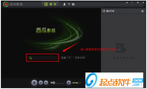 安裝好之后,打開西瓜影視\西瓜影音播放器。中間可以輸入查找輸入查找資源