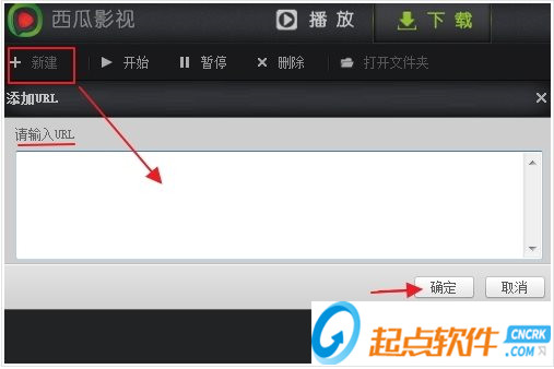 5、還可以點(diǎn)擊“下載”--“新建”,把你想播放的視頻網(wǎng)址,復(fù)制在對(duì)話框中,點(diǎn)擊確定,就開始邊下載邊播放了。