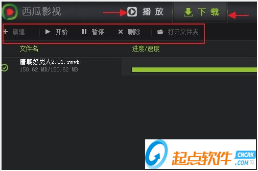 4、西瓜影音是采取邊在線觀看,邊下載的模式,你可以點(diǎn)擊軟件上方的“下載”,查看進(jìn)度,以及保存的位置,暫停等操作。