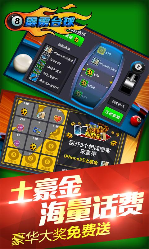 《霹靂臺(tái)球》(8 ball pool)全球最火爆的臺(tái)球游戲強(qiáng)勢(shì)發(fā)布,全球五千萬人在線,海量好禮玩就送,讓你一桿爽到底!1.iPhone土豪金、海量話費(fèi)送不停!