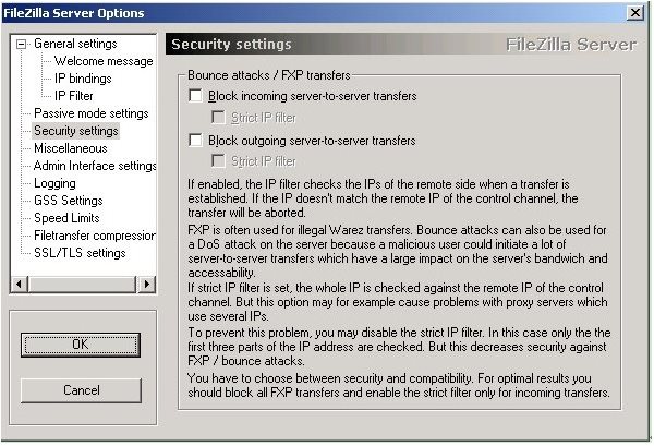 為了避免此問題,可以禁用嚴(yán)格IP過濾,這樣只檢查IP地址的前三部分,但這會使對FXP/反彈攻擊的安全都降低。因此,你需要在安全和兼容性之間做選擇,要想達(dá)到最佳效果,你可以阻止所有的FXP傳輸并且僅對傳入的傳輸啟用嚴(yán)格過濾。