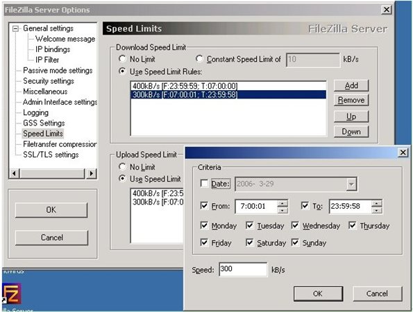 2.上傳下載速度限制,并可以限定某個(gè)特定的時(shí)間段的速度;