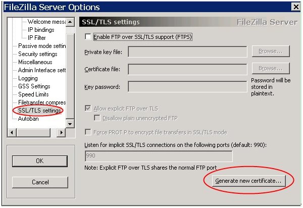 選中“Enable FTP over SSL/TLS support(FTPS)”