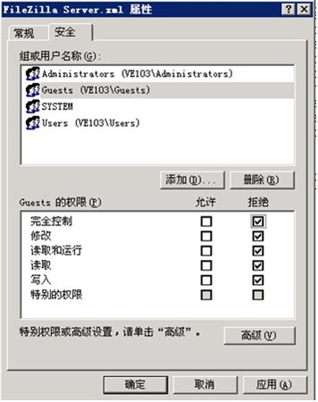 加入Guest組禁止讀寫的權(quán)限,設(shè)置為拒絕。