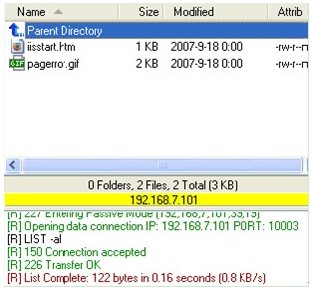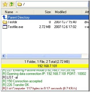 登錄成功后,可以看到剛才制定的FTP目錄下的文件,并具有相應(yīng)的上傳、下載權(quán)限。
