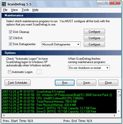 ScanDefrag 是配置Microsofts 、Nortons, 或JKessels 磁盤應用程序