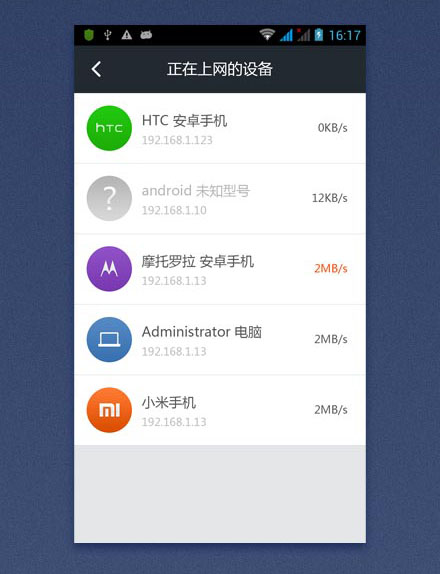 360路由器助手安卓版讓你的安卓手機也能輕松管理家庭路由器,它幾乎支持所有的路由器型號,隨時監(jiān)測著用戶的網絡,杜絕蹭網、盜號、木馬病毒以及網絡分配不均等狀況。