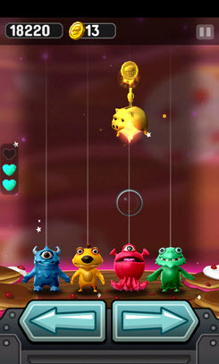 玩慣了節(jié)奏大師的快速彈鍵盤,那就試試輕松詼諧的喂喂我吧。游戲玩法簡單,但是很考驗(yàn)玩家的靈敏性,通過不斷掉落的事物,你要同時(shí)喂飽四只小怪獸。并且根據(jù)不同麥奇的顏色,你要逐一分配給他們不同顏色的食物。當(dāng)然游戲并沒有想象中那么簡單哦。掉落實(shí)物的同時(shí)也會(huì)掉落金豬、紫色火焰等,這時(shí)候僅需要點(diǎn)擊小怪獸,發(fā)動(dòng)出擊把它們打落就可以了。隨著時(shí)間的累計(jì),食物落下的速度也會(huì)逐漸加快,且顏色種類也會(huì)逐級(jí)增多,現(xiàn)在就是考驗(yàn)?zāi)闶炙俚臅r(shí)候了,快來試試吧。