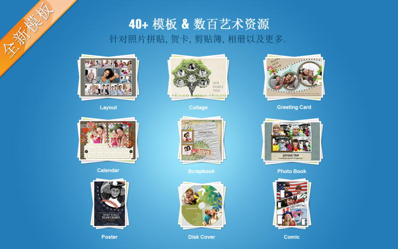 各種各樣的模板可供您設(shè)計(jì)制作專業(yè)級(jí)的照片拼貼,賀卡,剪貼簿,海報(bào),disk封面,照片日歷和照片集等.
