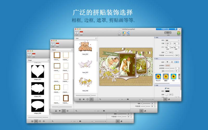 拼貼大師3免費(fèi)版擁有40+模板和數(shù)百藝術(shù)資源,豐富的拼貼元素、廣泛的拼貼裝飾選擇,是Mac OS X系統(tǒng)下一款功能強(qiáng)大且使用簡(jiǎn)單的照片拼貼制作工具, 它可以讓您快速制作照片拼貼, 剪貼簿, 賀卡, 照片日歷, 相冊(cè), 海報(bào)等.讓您將生活中的美好瞬間變成精美的照片拼貼和親朋好友分享.